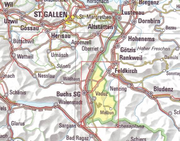 Wanderkarte Fürstentum Liechtenstein - Tourism map of Liechtenstein