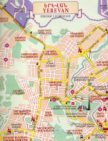 • Yerevan, Gyumri, Vanadzor, Stepanakert city map with main streets