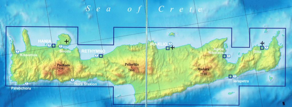 - City maps of Hania, Rethymno, Iraklio, Ierapetra, Sitia, Agios Nikolaos