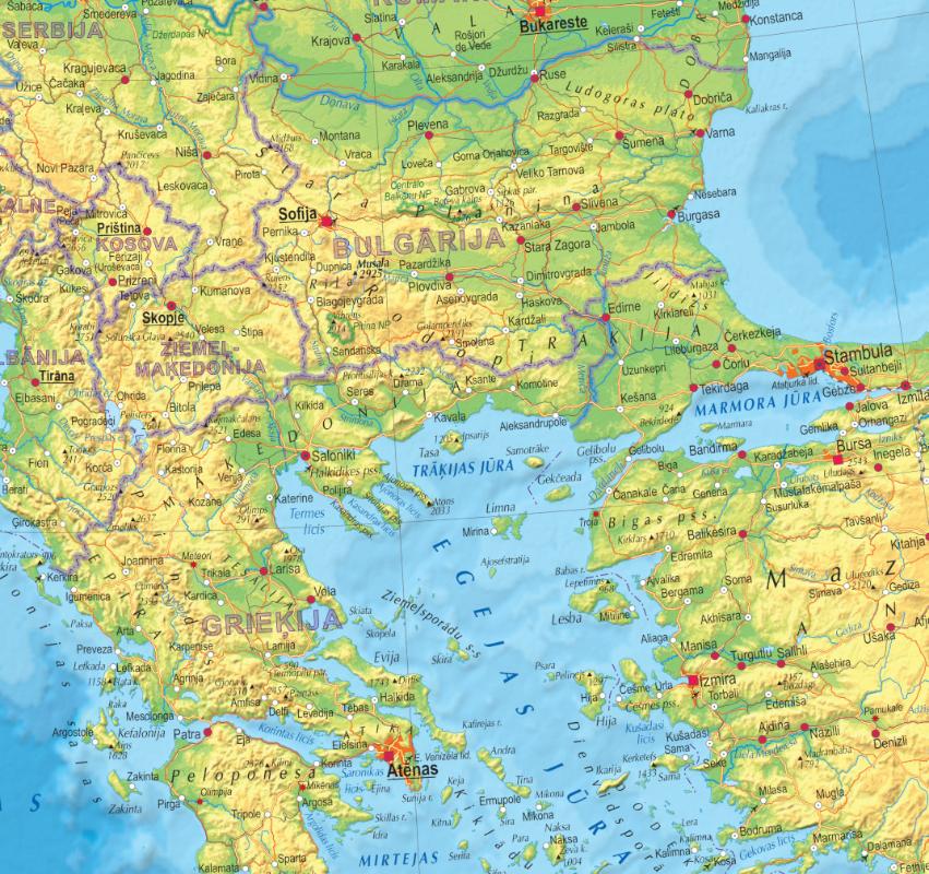 Eiropas fizioģeogrāfiskā karte (izdruka) - Europe Physiographic Map (printout)