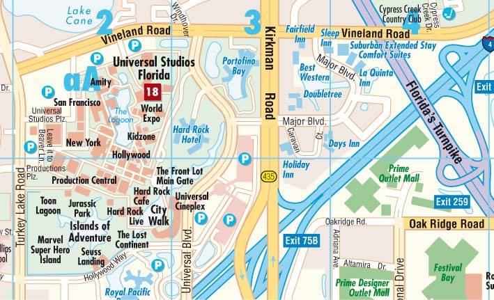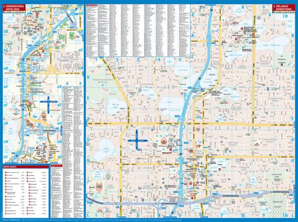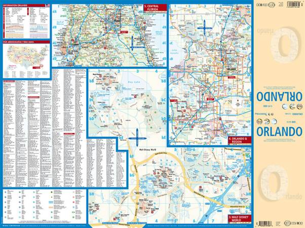 Maps: Orlando Downtown 1:11 000, Central Florida 1:1 200 000, Orlando & Region 1:200 000, Walt Disney World 1:25 000, International Drive Area 1:25 000, USA political & Time Zones