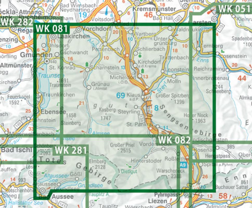 (WK 081) Pyhrn-Priel-Eisenwurzen, Grünau, Almtal, Steyrtal, Nationalpark Kalkalpen, Bad Aussee, Wanderkarte 1:50'000