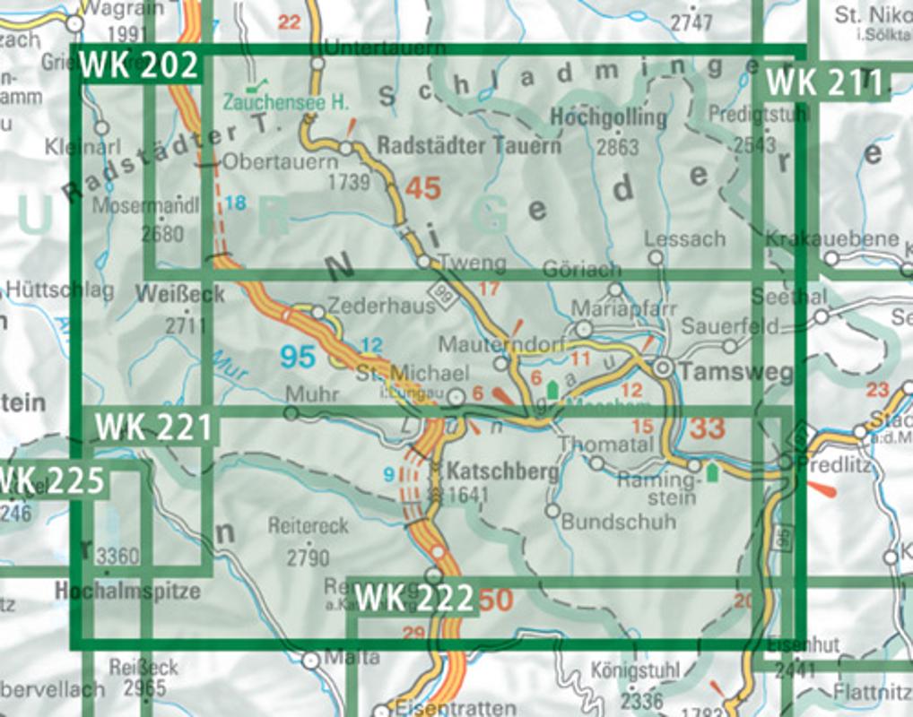 (WK 202) Radstädter Tauern, Katschberg, Lungau, Wanderkarte 1:50'000