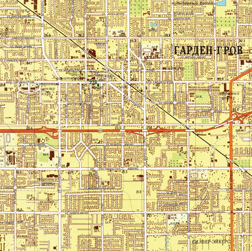 Los Angeles Southeast: Anaheim, La Palma, Seal Beach, Cypress, Westminster, Santa-Ana, Orange, Huntington Beach, sheet size 121 cm x 84 cm