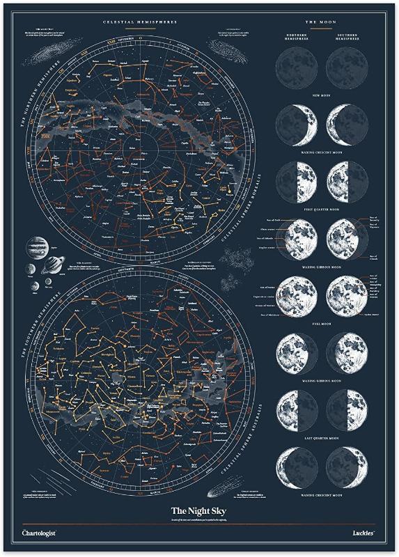 Explore the skies from the comfort of your own room through a beautifully printed constellation poster & moon poster; Even hang as framed art posters for your living room decor or bedroom wall art