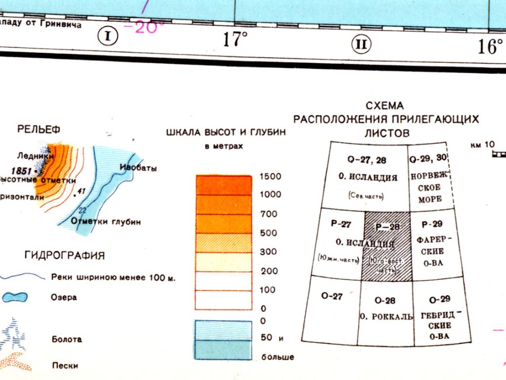 • Reprinted Russian Soviet Military Topographic Map – P-28 ICELAND (SOUTHEASTERN PART) (Iceland), 1:1'000'000