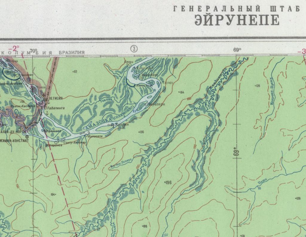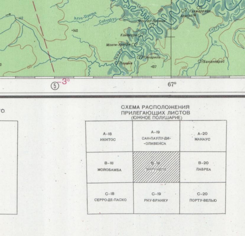 - Original Russian Soviet Military Topographic Map – (Southern Hemisphere) B-19 EIRUNEPE (Brazil), 1:1'000'000
