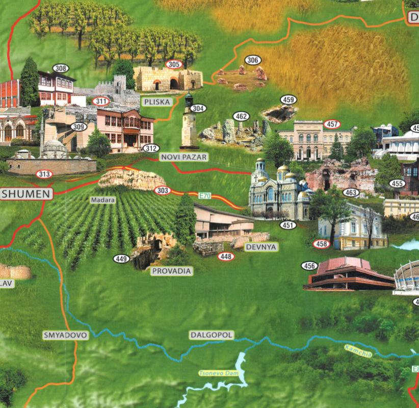 • Map of Bulgaria in photos with 525 interesting sites and landmarks in scale 1:540'000
