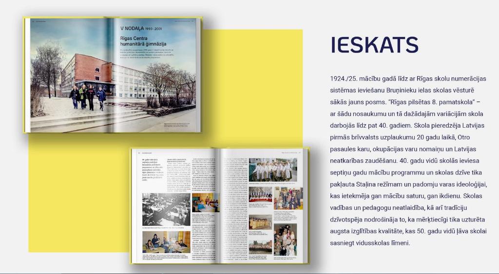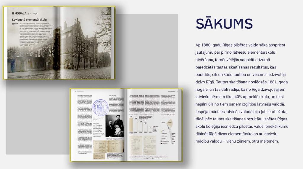- Grāmatā izsekota vienas skolas vēsture no pirmās latviešu meiteņu elementārskolas Rīgā līdz Rīgas Centra humanitārajai vidusskolai.